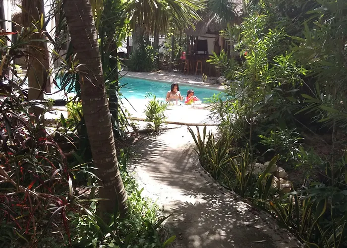 Green Tulum Cabanas & Gardens also offers an outdoor swimming pool and a terrace.